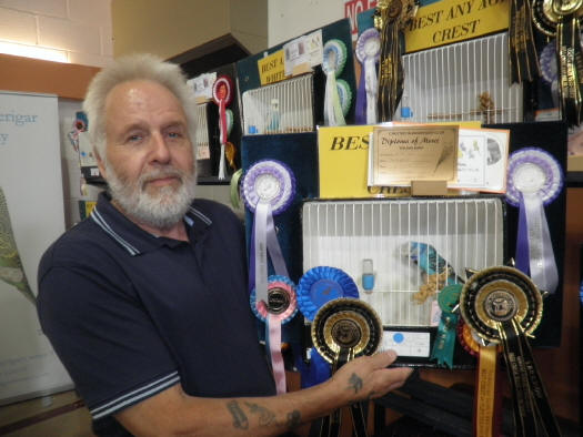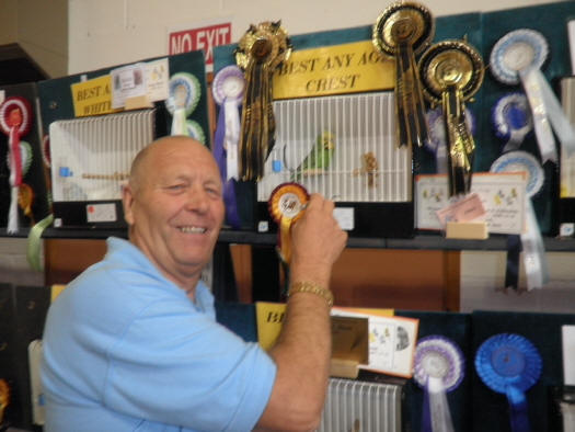 SPECIALIST & RARE VARIETY OPEN SHOW - 2012 The 24th Specialist & Rare Variety Open Show once again was a successful show with total entry of 650 of which 452 birds were benched in the competitive classes from 52 exhibitors. Our Guest of Honour this year to present the 45 trophies was Maurice Roberts, the Budgerigar Society President. CRESTS OF QUALITY There was an increase in the crested entry from 37 to 60 in our Golden Jubilee year for Colin lamb to judge. The champion circular crest any age cock class was the biggest class in the show with an entry of 18 crests some of which entered by Mick Widdowson and Dave Moss were the best ever to be seen and it is a credit to Mick & Dave for taking the variety forward over the past few years. The adult C.C. and eventually the Best Crest in Show went to Mick Widdowsons Circular Opaline Light Green cock of good size with plenty of shoulder and a powerful bird. Mick also occupied second place with his well known last years any age winner the Tufted Light Green cock of good size and shape and staged in good condition. Mick Anzara was third with a Circular Opaline Grey cock of good size. Dave Moss neat Tufted hen was best any age opposite sex.