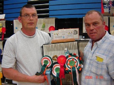 It was pleasing to see that our crested entry increased to 72 from the previous year's entry of 47 for our past President Grant Findlay to judge. As last year, it was the day of the Skyblues in the any age section, and previous challenge certificate winners at this show occupied the first three places. Grant awarded the any age certificate and Best Crest in Show to Paul Cheatley & Terry Alcorn's circular Skyblue cock, making it a double for them with the same bird (Best Crest & Best Crest Young Bird last year). This bird was staged in immaculate condition sporting a strong crest on a large body; a worthy winner indeed. The runner up was a quality tufted Skyblue cock from Ghalib & Janice Al-Nasser; winner of the best crest young bird in 2005. In third place was Sue & Rod Clarke's circular Skyblue cock, which was best crest any age last year. The best opposite sex went to Alan & Gina Adams' circular Cinnamon Grey Green hen. Dave Moss has done well with his circular Albino hen throughout the show season and he was pleased to add his name among the winners at the Club Show when Grant placed this super hen as the top of the young birds. A solid large bird with neat crest staged in good condition. Sue & Rod Clarke were second with a lovely circular crest Opaline Cinnamon Dark Green cock. A bird of good balance and a good crest. A lovely strong tufted Spangle Cinnamon Grey Green cock occupied third place for Alan & Gina Adams; a good bird but lacked condition on the day.