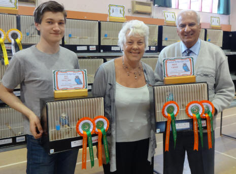 There were less crests benched this year and heading the 14 crests from 7 exhibitors was a circular opaline skyblue cock from Ghalib & Janice Al-Nasser’s stud. An adult circular opaline grey green cock benched by David & Linda Rafis were the runner up followed by Fred & Sheila Eatwell’s tufted cobalt cock in third place. Oliver Williams from the junior section benched a young circular cobalt hen as best crest young bird. Section Best Any Age Best Young Bird Champion G & J Al-Nasser F & S Eatwell Intermediate N/E N/E Novice C, D & J Sharpe C & L Daily Beginner C. F. Marshall N/E Junior N/E O. Williams